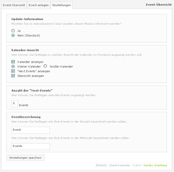- Eventbezeichnung Einzahl/Mehrzahl (für Frontendausgabe)